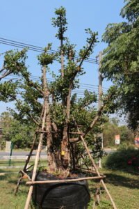 มั่งมี เป็นไม้ยืนต้นมงคล ไม่ผลัดใบ ให้ร่มเงาดีเหมาะปลูกเป็นไม้ประธานหน้าบ้านหรืออาคาร ให้ความสง่างาม ดูแลง่าย ทนร้อน ปลูกได้ในที่แดดจัด